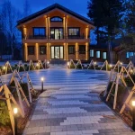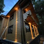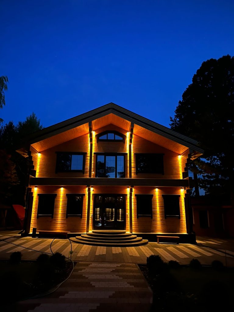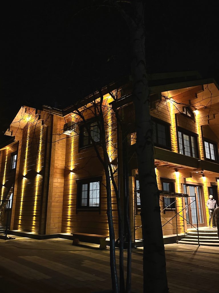 В рамках заказа подготовили и реализовали проект наружного и ландшафтного освещения: осветили дом, гараж и баню, как внутри и снаружи.