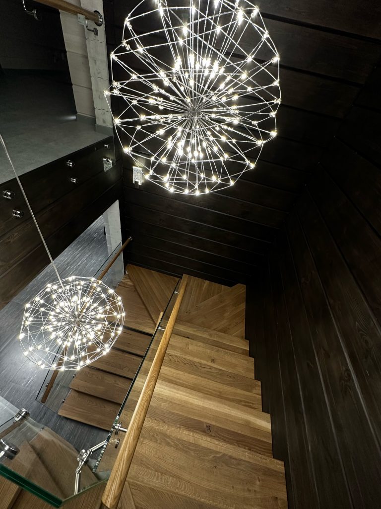 В 2023 г. наши специалисты выполнили комплексную работу по проектированию и светорасчету, монтажу натяжных потолков, а также по интеграции системы освещения в интерьер дома и пусконаладочные работы сети «Умного Дома». ИСТОЧНИКИ СВЕТА 300. В рамках заказа подготовили и реализовали проект наружного и ландшафтного освещения: осветили дом, гараж и баню, как внутри и снаружи.