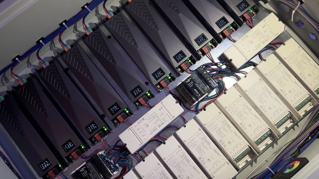 В 2023 г. нам была поставлена непростая задача: обустроить пространство пляжного волейбола. Нужно было «залить» помещение светом, при этом свет должен менять цвета и быть разделённой на 8 групп. Изначально речь шла только о проектировании и поставке светового оборудования. ИСТОЧНИКИ СВЕТА 1000 +. В ходе сотрудничества был сделан проект «по максимуму», но его пришлось удешевить за счёт ликвидации системы профилей и использования защищённой (уличной) диодной ленты. Убедившись в нашей компетенции, заказчик заказал у нас монтаж «под ключ».