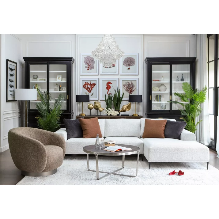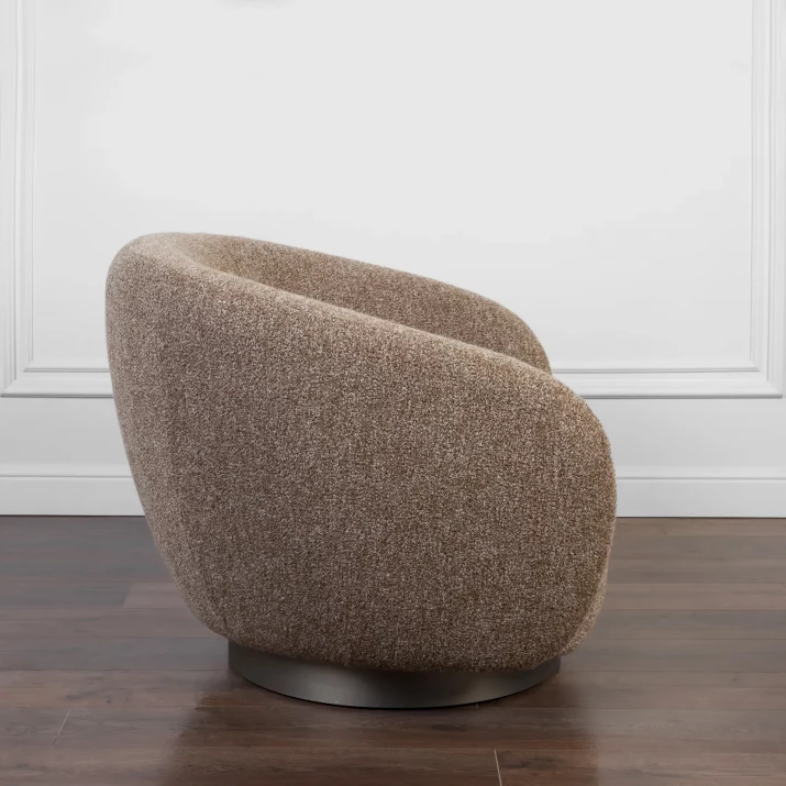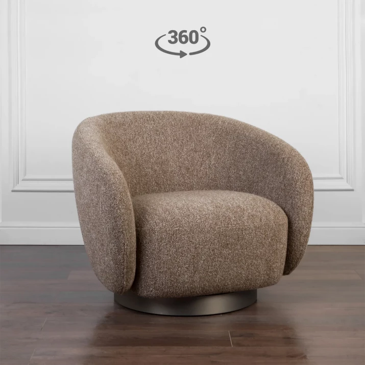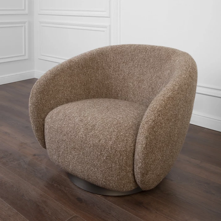 Новое, не похожее на остальные наши модели, кресло SHARON. Современные эргономичные формы, округлые линии, невероятно удобная посадка с мягким наполнением. Металлическое основание в благородном цвете никеля позволяет вращаться креслу вокруг своей оси на 360’.