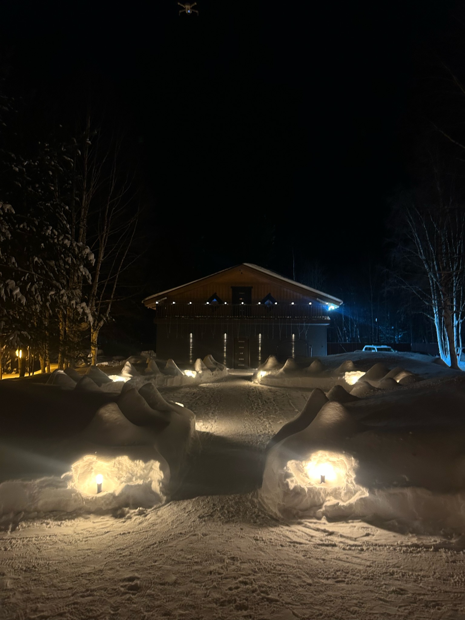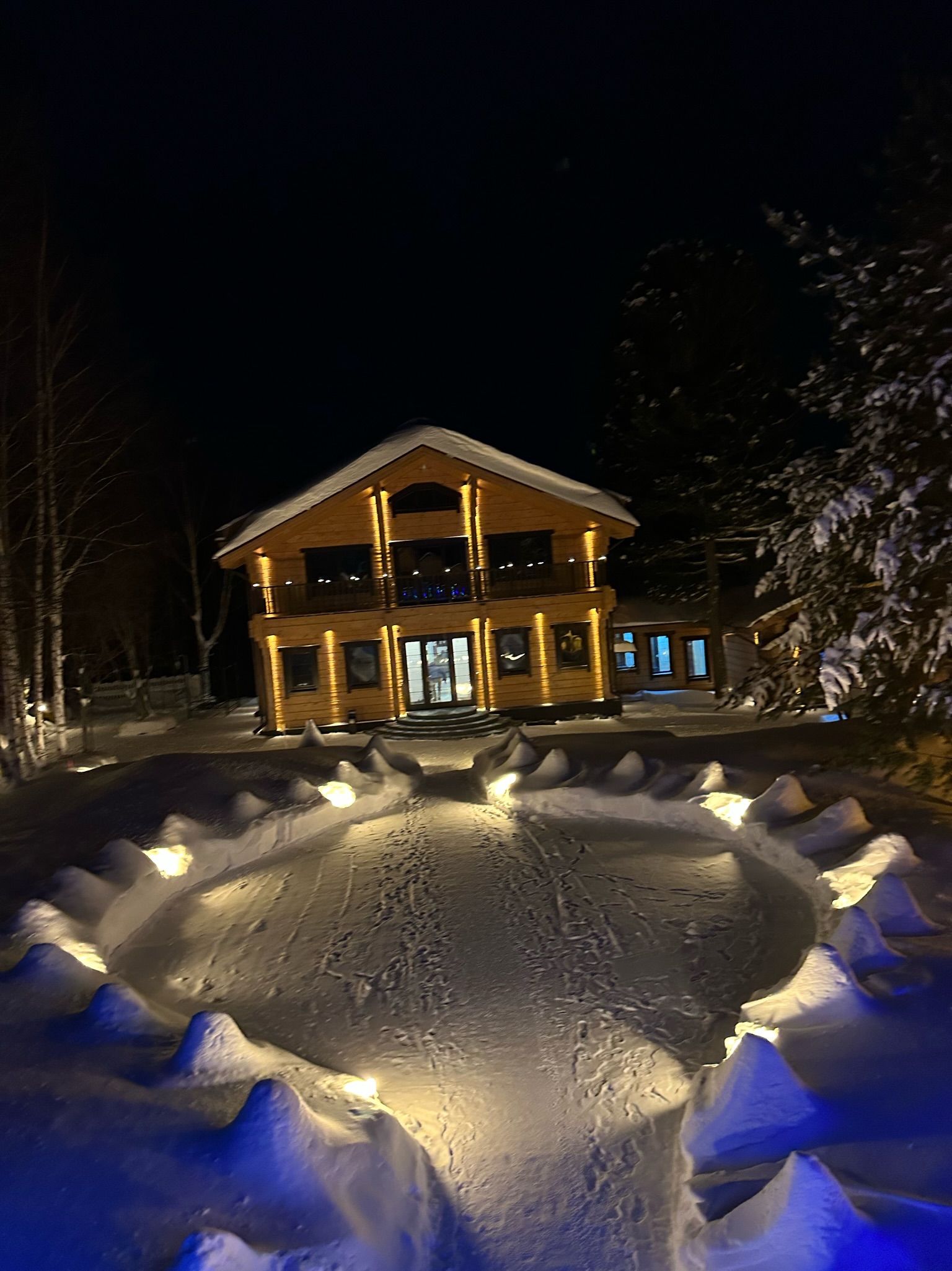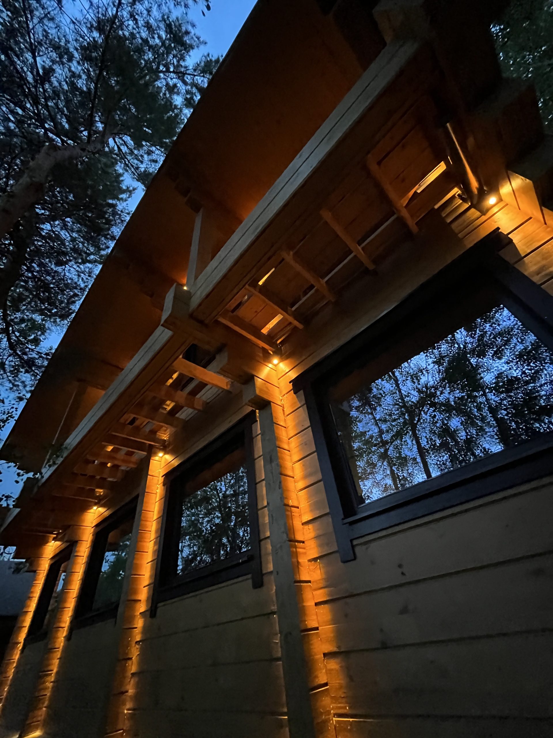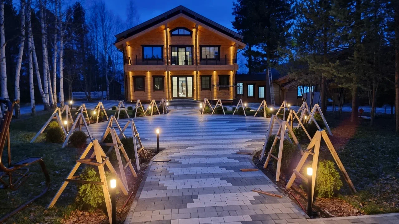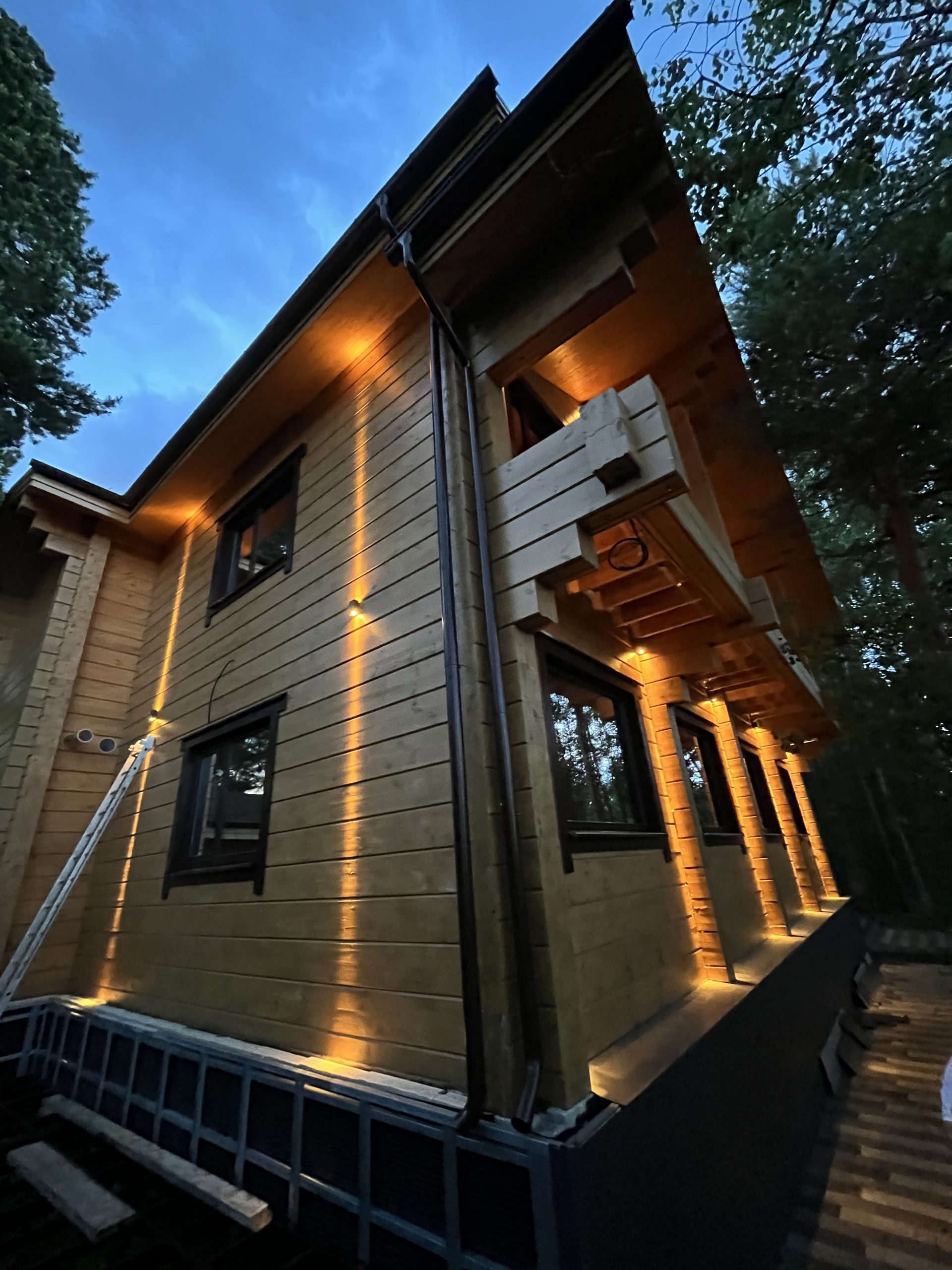 В рамках заказа подготовили и реализовали проект наружного и ландшафтного освещения: осветили дом, гараж и баню, как внутри и снаружи.